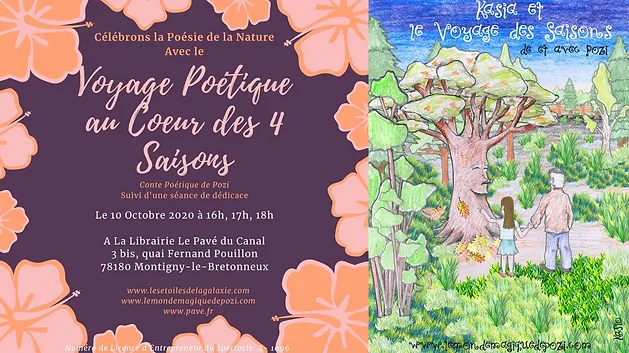 Ce Samedi 10 octobre à 16h, 17h, 18h, la librairie Le Pavé du Canal, vous proposera un voyage Poétique unique. Ce spectacle sera suivi d'une séance de dédicace.